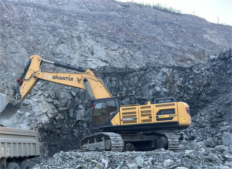 在實際應用中,山推SE800LC憑借出色的性能,贏得了現場機手及客戶的高度認可。機手表示,該設備不僅挖掘力強、動作流暢,而且配備空氣懸浮座椅,駕駛體驗更加舒適。同時,機油濾清器、燃油濾清器等關鍵部件均設置在地面可觸及的位置,維護更加便捷,極大提升了設備的可操作性和維修效率。客戶也對山推設備給予了高度評價,認為SE800LC鏟斗容積大、裝車效率高、油耗表現優秀,真正做到了高效低耗。同時,山推智慧施工平臺的應用,也讓設備管理更加智能化,為礦區的數字化升級提供了技術支持。