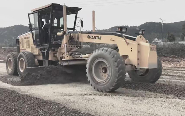 山東某國道道路建設項目施工,山推SG18-3平地機先后承擔了該工程的路基平整及后續路面修筑散布石子等物料的工作,施工方對山推平地機的施工效率和鏟刀更大調角范圍非常滿意,并對整個施工過程中山推平地機的維護便捷性和操作舒適性給予了稱贊,表示山推該款平地機是名副其實的道路施工利器。
