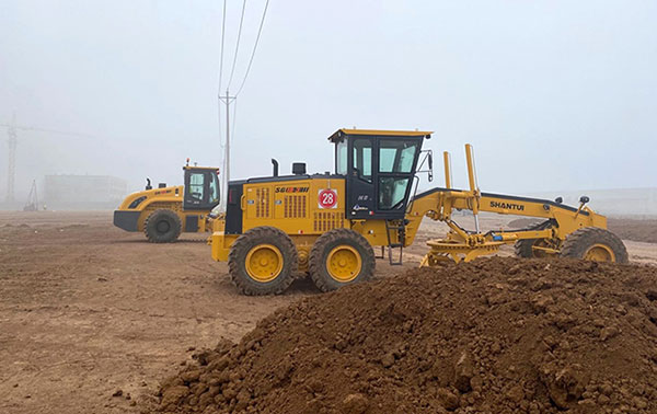 某大型建筑工地,成套采購山推系列設備,推土機、壓路機、平地機等進行挖方、填方、場平等作業,山推設備以動力強勁、質量品質高、效率高、故障率低贏得該工地青睞。