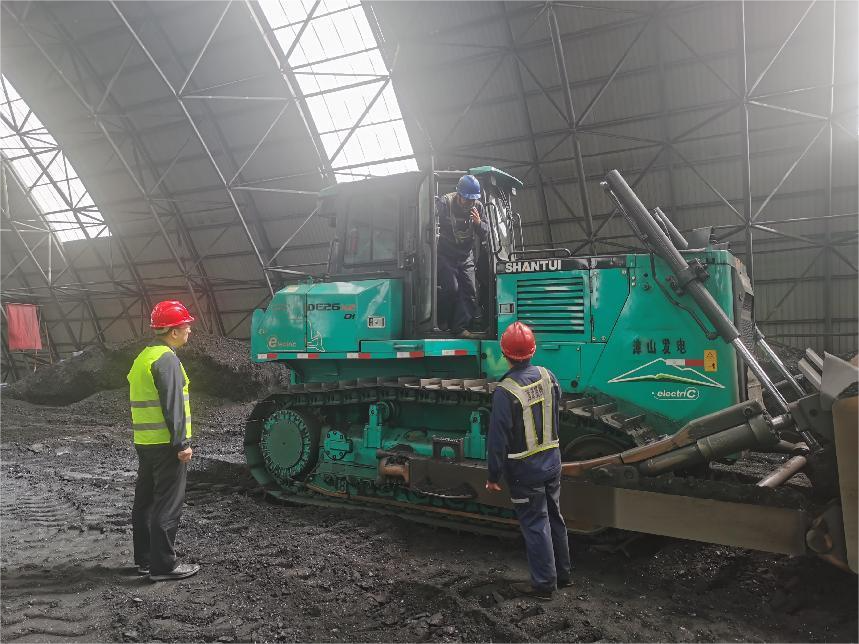 本項目主要涉及煤棚推煤工況,核心任務是將煤粉堆垛后傳輸至傳送帶,以保證電廠燃煤供應的穩定性。該電廠采用了四臺山推DE26-X2電動推土機,分別在四個煤棚作業,形成了目前國內電推設備集中度最高的作業區域。DE26-X2電推每日工作6-8小時,中午休息1.5小時,并在中午及下午作業結束后進行充電,以確保設備的持續高效運行。