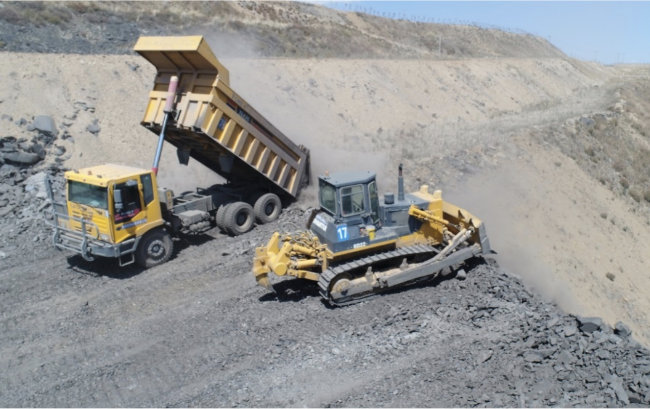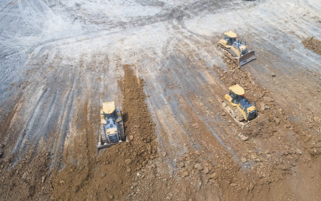 國(guó)內(nèi)西南某金屬礦排土場(chǎng)施工機(jī)群作業(yè),山推推土機(jī)以動(dòng)力足、質(zhì)量好、效率高、故障率低贏得該礦山青睞,多次購(gòu)買山推推土機(jī)。目前,該排土場(chǎng)使用多臺(tái)多種系列山推機(jī)型。