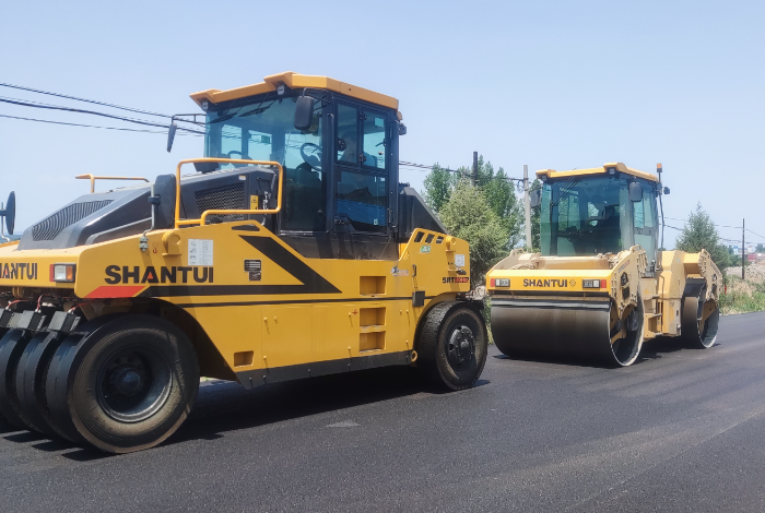其中山推產(chǎn)品施工內(nèi)容包括:攤鋪機進行一次性面層鋪設,鋪設寬度8-8.5m;鋪設后先雙鋼輪振動壓實,后膠輪壓路機靜碾揉搓表面壓實,施工遍數(shù)兩次。施工后進行壓實度、平面度測量,達到施工標準要求。
