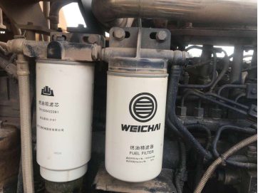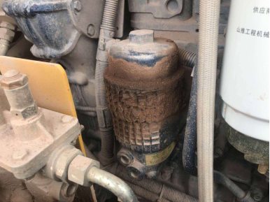 2、更換發動機柴油濾芯(圖3),柴油濾芯是為一次性使用的,嚴禁清洗和反復使用。柴油濾芯安裝時,密封圈上涂抹少量潤滑油,用手擰緊直到密封墊與濾芯蓋頭相接觸為止,然后再擰緊半圈到3/4圈,且勿擰太緊,導致濾芯及密封圈變形漏油。